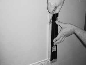 Occasionally, even after properly preparing the substrate, the surface can still have bows, high spots, ridges, or uneven areas. Place a level against the wall. If there is a 1/8” gap or greater, use a filler such as spackling or drywall compound to fill in imperfections.