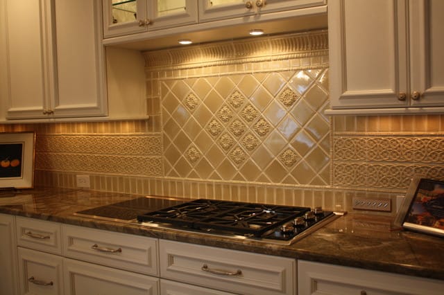 Another way to choose a backsplash option is by thinking about the size of material you want to use. This varies among products. Typical ceramic tiles measure 4.25” x 4.25”. Other sizes include the popular 3”x6” subway style format. Glass mosaic tiles typically come in 12”x12” sheets and consist of groupings of smaller squares or rectangles of various materials.
