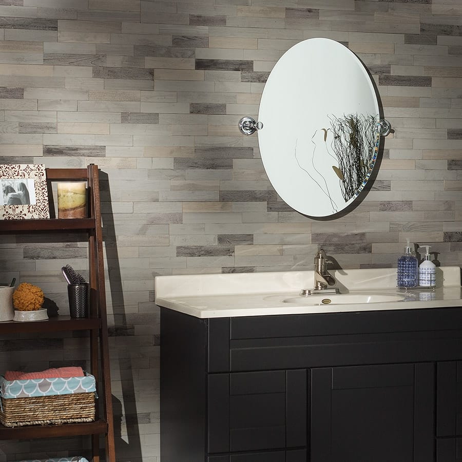 Aspect Peel & Stick Wood Tiles are the newest addition to the wood backsplash market. The multi-dimensional mosaic-style panels are made of real wood but are applied to walls with peel and stick adhesive making it the easy, DIY way to add the timeless look of wood to walls without a contractor. They’re available in 2 beautiful colors to add depth and character to any design scheme. Panels measure 6.5 x 24 inches and are available in a 5-pack or a 15-square-foot kit.