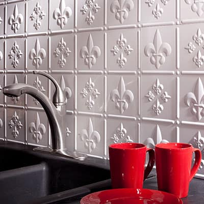 Backsplash Galleries Fasade Faux Tin Backsplash Click on a color to see photos of backsplash products in those color families. White Silver Bronze Copper Black Aspect Peel and Stick Tiles Click on a material to see photos of backsplash products in those styles and finishes. Metal Glass Stone Collage