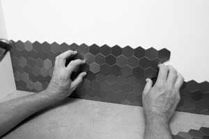 When tiles are installed to your satisfaction, press each again firmly with your hand. This will ensure that the adhesive bonds to the substrate.