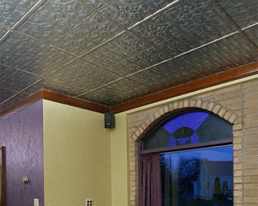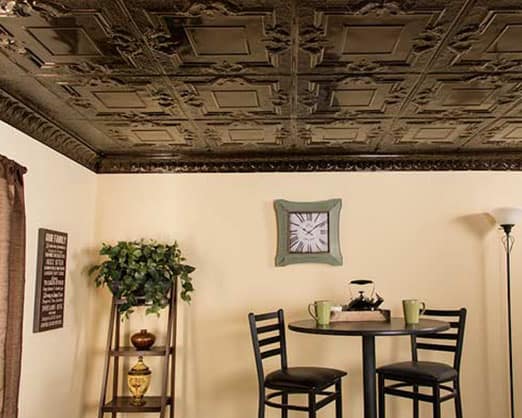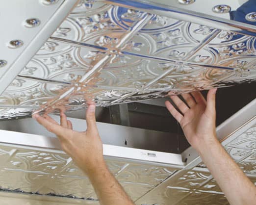 Suspended tin ceiling systems consist of tiles that are authentic recreations of the tin ceilings of yesteryear suspended or dropped into a grid. Tin ceilings provide an old-world charm and are perfect for dens, living rooms, bedrooms, kitchens and dining rooms. Color-matching grids and grid covers are available for some choices.