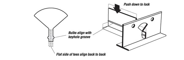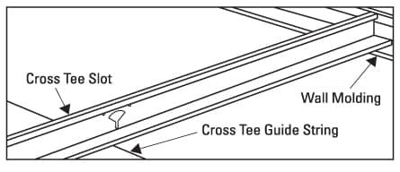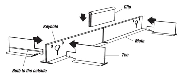 - When using a 2′ x 4′ tile system, install the Tees 4′ on-center by skipping every other keyhole.