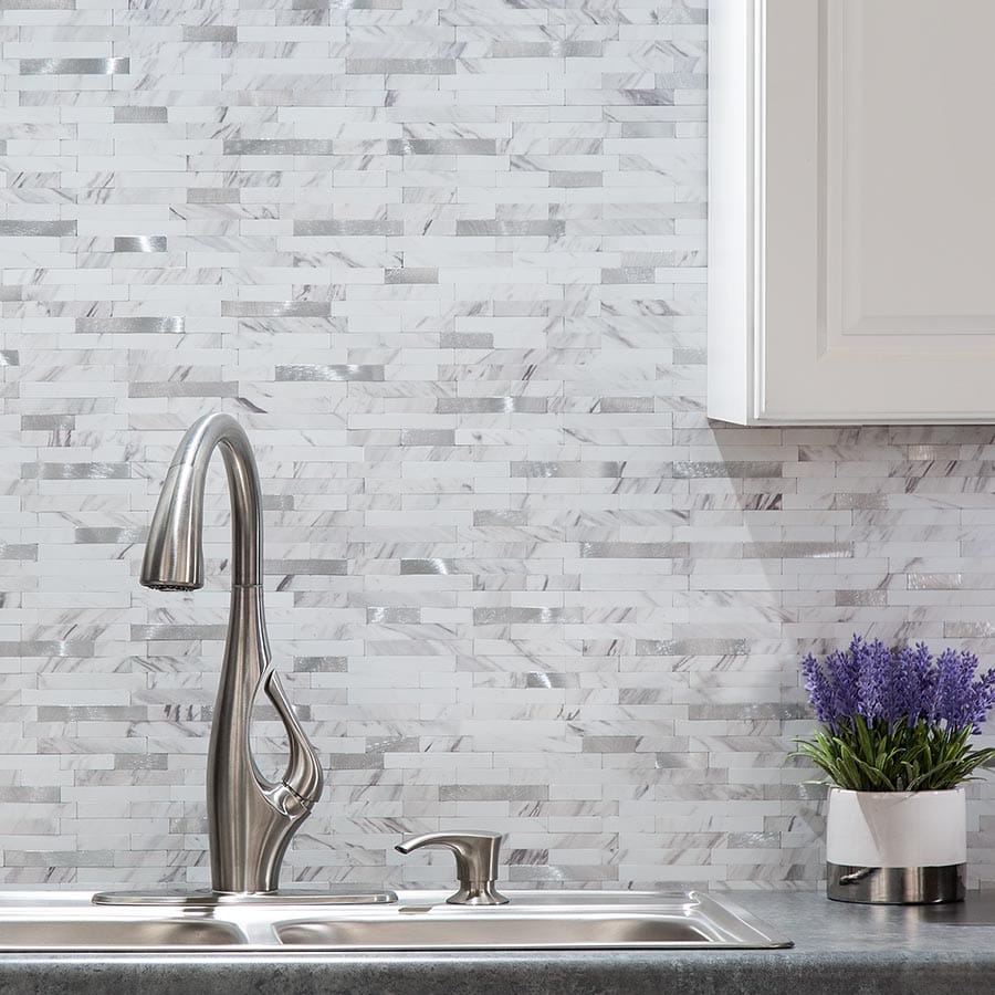 Aspect Peel & Stick Collage tiles are a unique mix of durable composites, most with brushed metal or stone. Our proprietary composite material is designed to look like distressed enamel, worn stone or heavily glazed ceramic. The tasteful addition of brushed metal or stone in many pieces adds distinctive visual interest to any space. With its easy, peel and stick installation, these gorgeous collage tiles require no contractor, grout, mortar, or complicated or expensive tools. It’s the perfect choice for the DIY homeowner.