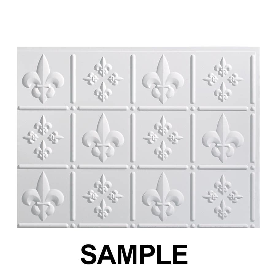 Fasade Fleur-de-lis backsplash design features stylized lilies, and a Fleur de Lis pattern that is majestic and heralds back to traditional design and aesthetic. Fleur-de-lis backsplash panels bring elegant style and grace to any space. This style of panel uses Standard Profile trims.