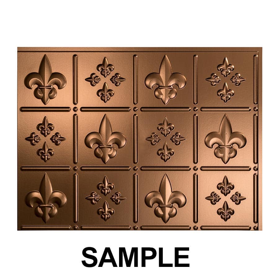 Fasade Fleur-de-lis backsplash design features stylized lilies, and a Fleur de Lis pattern that is majestic and heralds back to traditional design and aesthetic. Fleur-de-lis backsplash panels bring elegant style and grace to any space. This style of panel uses Standard Profile trims.