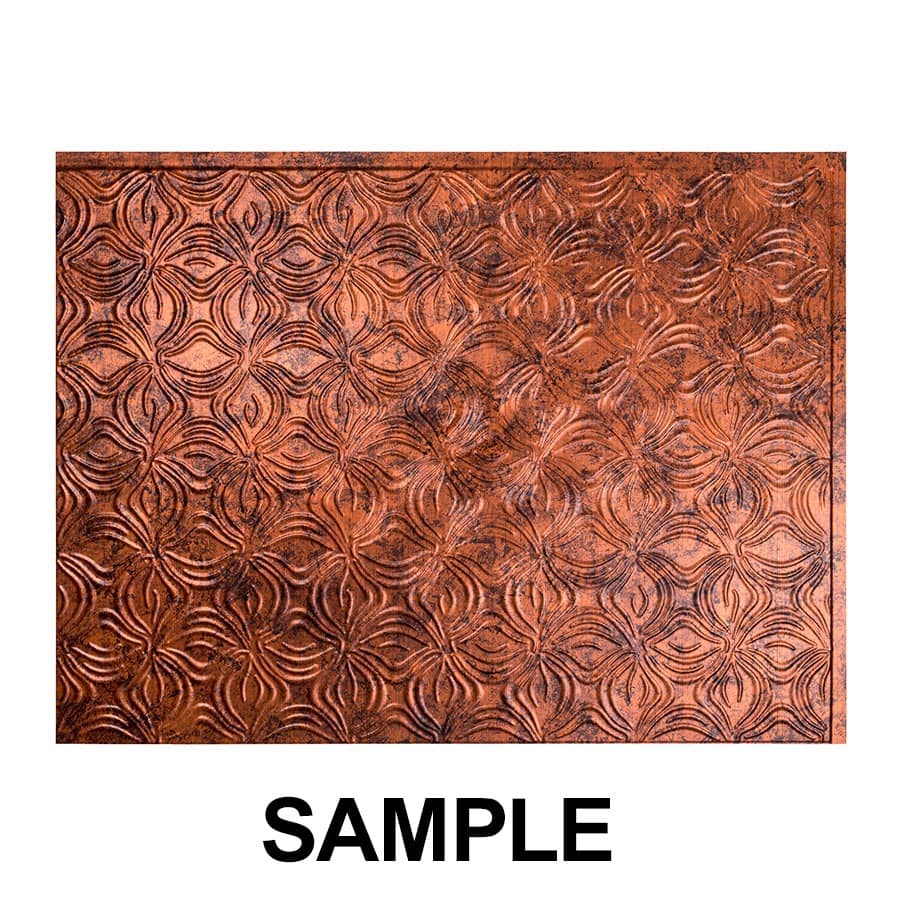 The Lotus backsplash features organic floral leaf elements that embellish this playfully modern kitchen backsplash panel design. This style of panel uses Standard Profile trims.