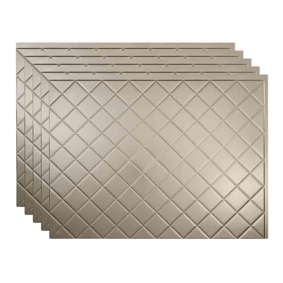 The Fasade Quilted backsplash design is a sleek, functional style that was used in classic 1950’s diners and commercial kitchens. This style of panel uses Standard Profile trims.