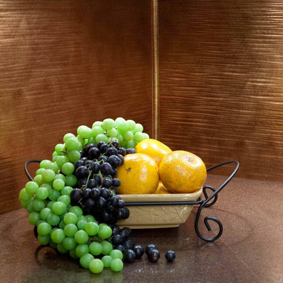 Delicate lines adorn this backsplash design, which evoke subtle ripples brought to life by a breeze on a pond. This style of panel uses Standard Profile trims.