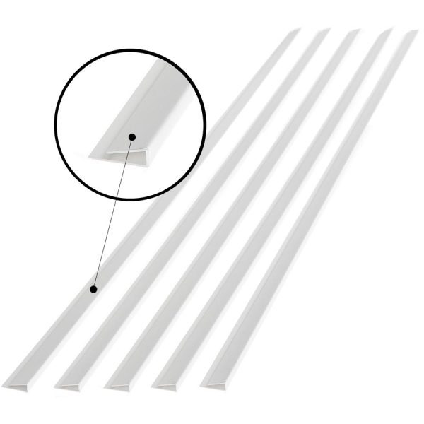 Fasade J-Trim allows you to finish the edges of your backsplash, ceiling or wall panels in a matching finish. These trims are easy to install and add a professional touch to your project. No special tools are required – cuts with scissors or utility knife