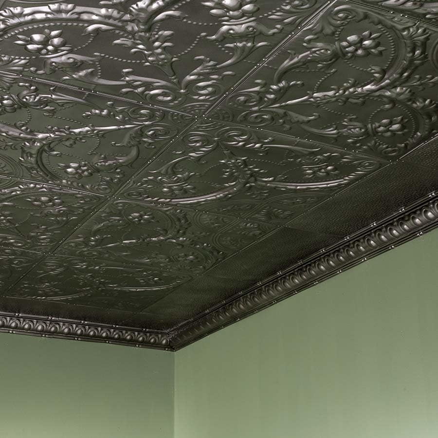 Our 5-pack of tin ceiling tiles-Saginaw will add old-world beauty to your home. The Saginaw design features Arts and Crafts-style floral elements in a dynamic, nonsymmetrical fashion. This pattern enlivens any room and delights with its sense of whimsy. Made in the U.S. of real 29-gauge tin-plated steel, Great Lakes Tin Ceilings are available in 10 styles and 10 color finish choices. They are available in nail up and lay-in styles are easily applied with nails, screws or glue.