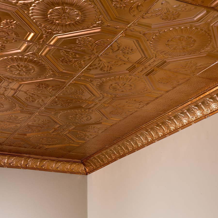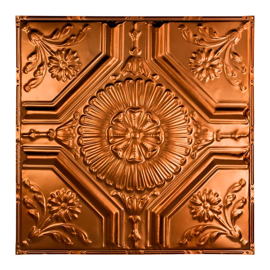 Our 5-pack of tin ceiling tiles-Rochester will add old-world beauty to your home. A perfect choice for your home decor project. A blooming flower radiating outward anchors the Rochester style panel. Smaller floral forms and leaves at each corner highlight this traditional, Victorian-styled panel. Made in the U.S. of real 29-gauge tin-plated steel, Great Lakes Tin Ceilings are available in 10 styles and 10 color finish choices. They are available in nail up and lay-in styles are easily applied with nails, screws or glue.