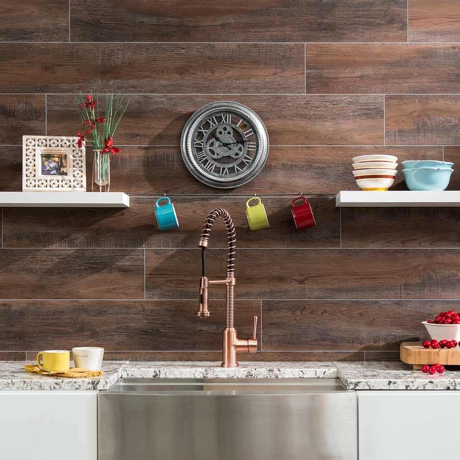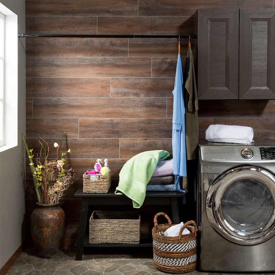 These Palisade glue-up decorative wall planks mimic natural wood grains but are made of waterproof PVC, making them resistant to water, mold and mildew. Cheaper than traditional tile installations which require added materials like grout and special tools, these PVC panels are easy to install so there’s no need to hire an expensive contractor. Perfect for any environment.