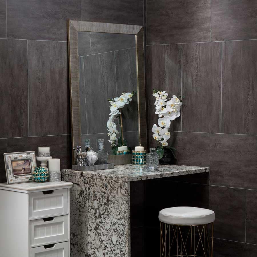 Perfect for wet areas like baths, kitchens and basements, Palisade waterproof grout-free wall tiles repel water and resist mold and mildew. A typical installation takes much less time than a traditional tile project because they do not require grout. Simply click interlocking joints into place. With many versatile colors to choose from, Palisade tiles add style and sophistication to any space while remaining easy to keep clean.