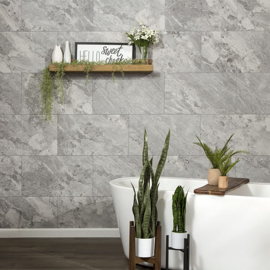 Perfect for wet areas like baths, kitchens and basements, Palisade waterproof grout-free wall tiles repel water and resist mold and mildew. A typical installation takes much less time than a traditional tile project because they do not require grout. Simply click interlocking joints into place. With many versatile colors to choose from, Palisade tiles add style and sophistication to any space while remaining easy to keep clean.
