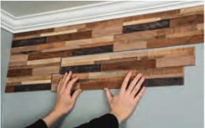 Measure the first area to be covered by Rustic Grove Wood Wall Panels. We recommend you lay out the entire project on a flat surface, like a table or floor, before adhering to the substrate to be sure you have enough panels, and your design and layout is correct. This will also give you good reference as to how the panels will look on your wall. As you lay out the panels, make sure the colors (which vary slightly like all wood), and seams are to your liking.