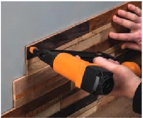 A manual or powered miter saw is the recommended cutting tool for the wood panels. Use a jigsaw for cutting notches or other more intricate cutouts such as an electrical outlet.