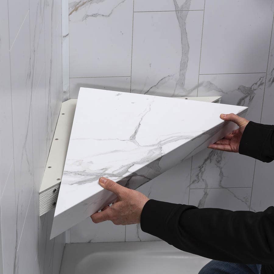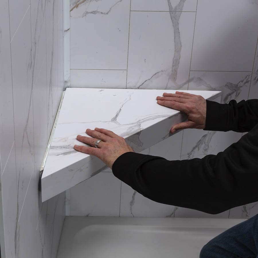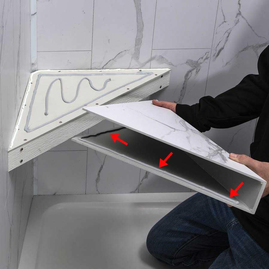 After locating where you want to place the bench, put adhesive onto bracket. Suggested height is 20″ from floor.