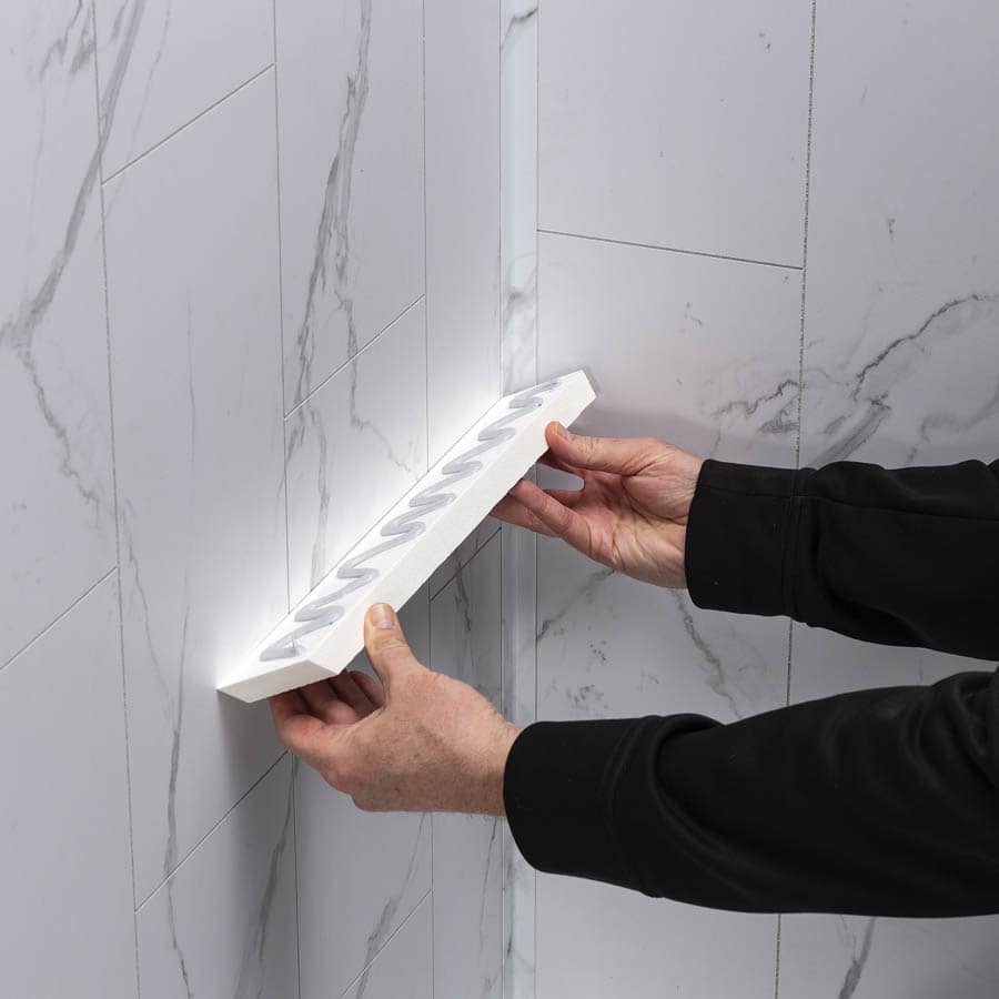 Although Palisade tiles are 100% waterproof, we recommend the use of a siliconized sealer like DAP® or SilTex in the seams for added protection. Follow your local building codes for wet environments like shower and tub enclosures. We recommend a 100% waterproof substrate that will prevent water from getting behind potentially unsealed areas that would cause mold or other damage.