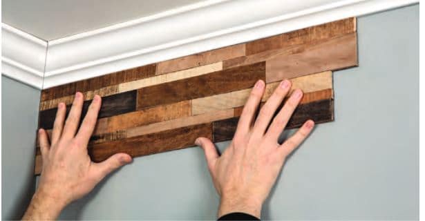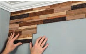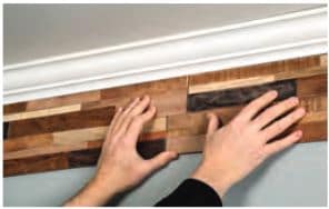 Measure the first area to be covered by Rustic Grove Wood Wall Panels. We recommend you lay out the entire project on a flat surface, like a table or floor, before adhering to the substrate to be sure you have enough panels, and your design and layout is correct. This will also give you good reference as to how the panels will look on your wall. As you lay out the panels, make sure the colors (which vary slightly like all wood), and seams are to your liking.