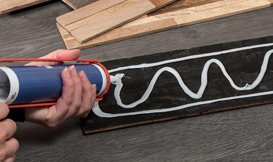 We recommend a high-quality polyurethane construction adhesive be applied to the back of each panel in a “S” pattern.