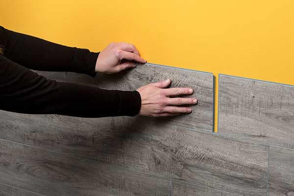 Perform a “dry layout” prior to applying adhesive. This will help you visualize tile cuts and placement of tiles with similar designs. Some of the wood-look planks include color variations, lines, and cracks to emulate the look of natural wood. Avoid placing tiles with similar or identical patterns or texture next to each other. Measure walls, & check for level and square. Depending on dimensions and room construction, you may need to trim some panels accordingly.